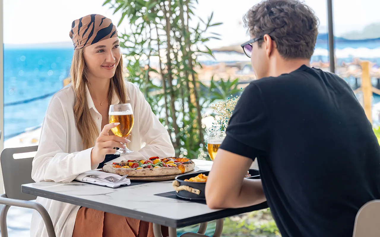 It is at your service throughout the day to crown your beach and pool enjoyment with delicious flavors. Add energy to your day with refreshing alcoholic and non-alcoholic beverages, along with carefully prepared sandwiches, toasts, burgers, and light snacks. Take a refreshing break with the help of our friendly staff and enjoy your holiday to the fullest.
